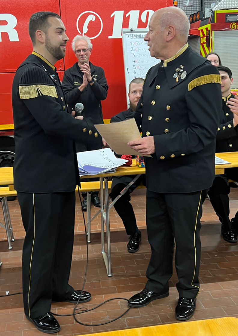 Staffelübergabe von Reinhard Huy an Emanuel Aquilotti bei der Mitgliederversammlung im Februar 2026